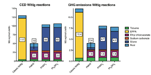 The CWR is also extremely efficient leading to significant reduction in both cumulative energy demand and greenhouse gas emissions when compared to the normal Wittig reaction.